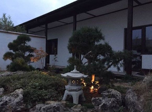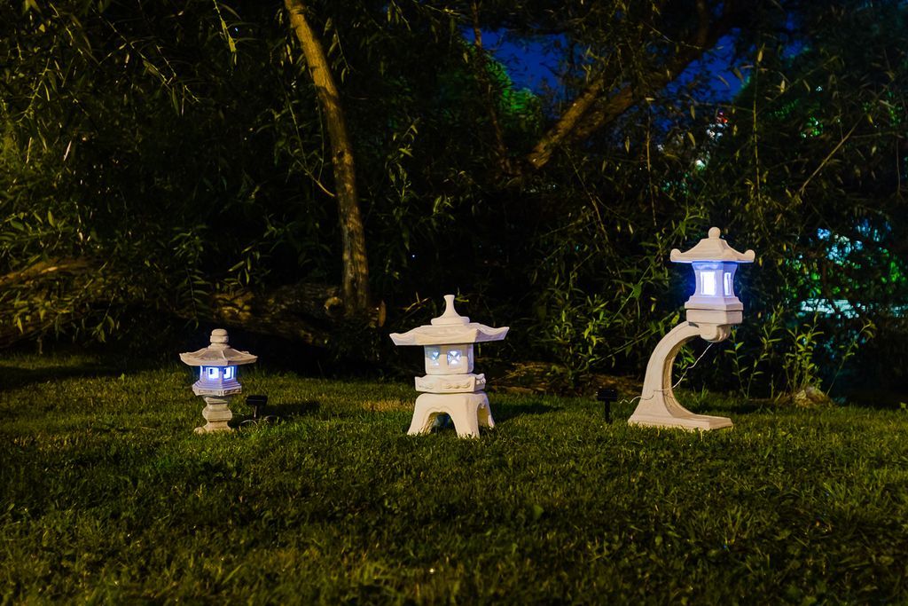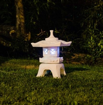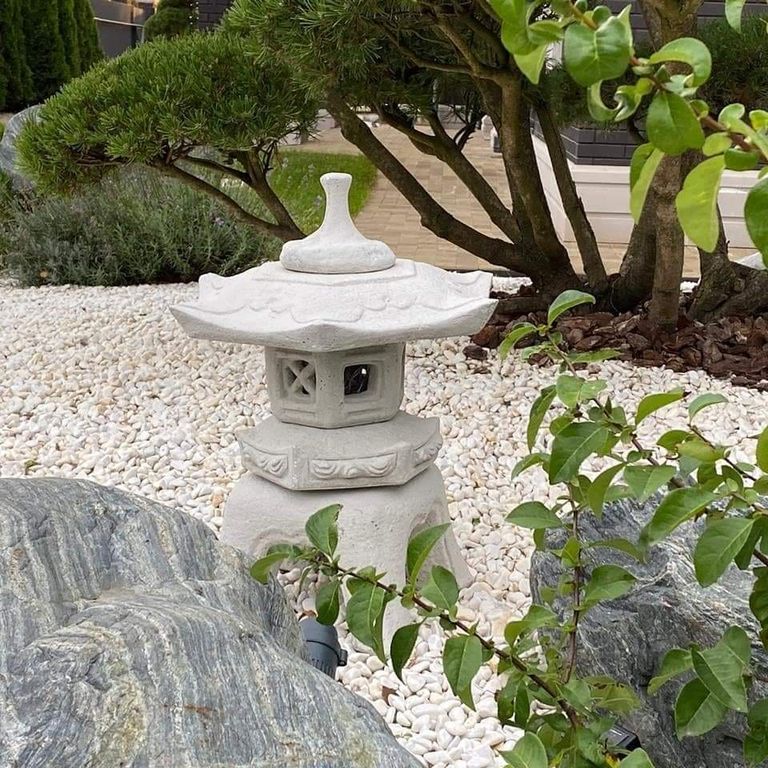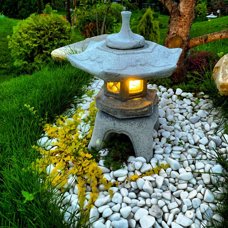 Фонарь юкими-гата. Этот фонарь является украшением сада. Его плоская широкая крышка с загнутыми краями позволяет зимой скапливаться на ней снегу. Перевод названия — любование снегом. Ножка такого фонаря не очень высокая. Со временем он может обрасти мхом и слиться с ландшафтом, подсвечивая небольшие участки сада.